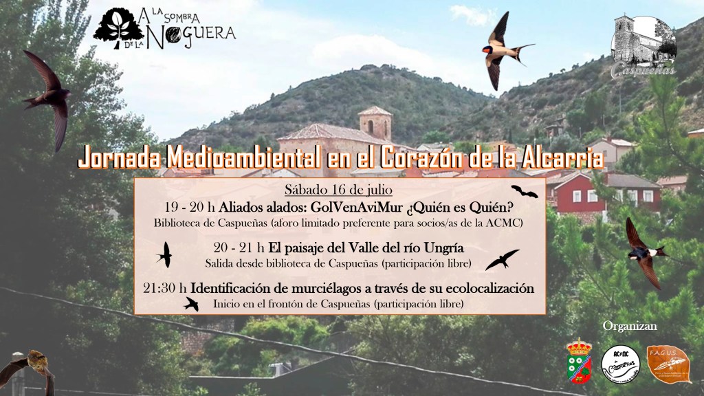 Con la colaboración del Ayuntamiento y de la Asociación Cultural y Musical de Caspueñas, el pueblo acoge en julio del 2022 unas jornadas sobre «Aliados Alados» e «Interpretación Paisajística del Valle del río Ungría». #AlaSombradelaNoguera #LaAlcarria