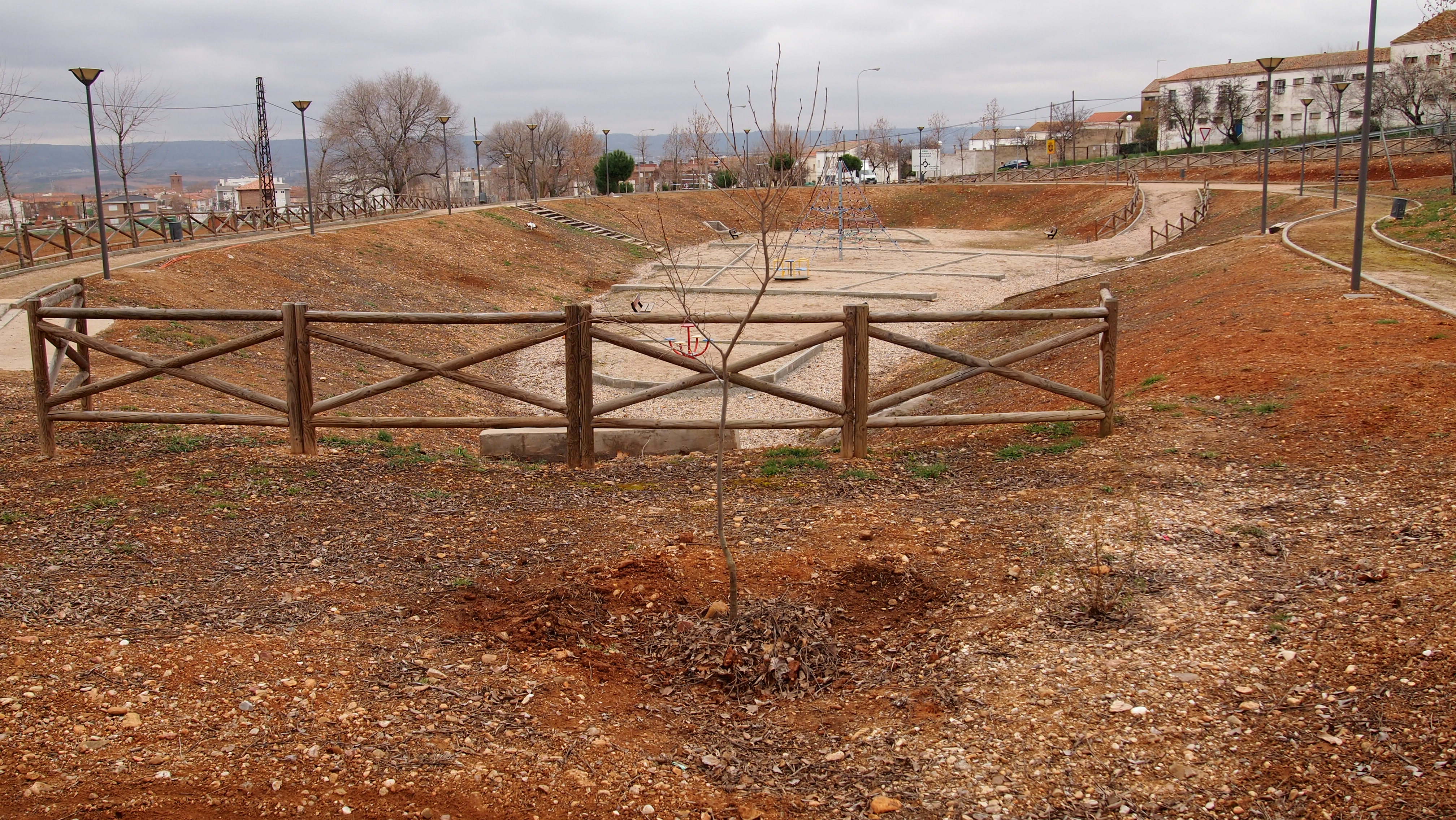 Así luce el parque el 22/02/2014, justo antes de la primera plantación, momento en el que quisimos hacer unas fotos para ver el avance del parque desde el principio. En las fotos, se ven las grandes bañeras con los tubos para la entrada del agua, así como los paseos y árboles que las rodean.