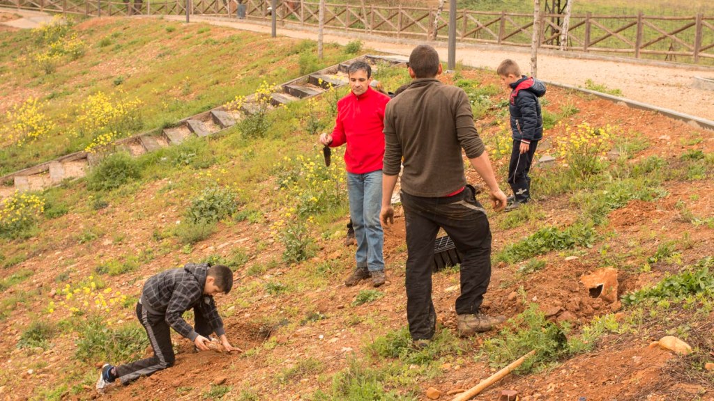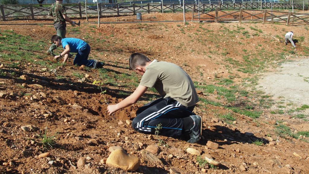 La mañana fue muy calurosa pero con el esfuerzo de personas como Fernando, Jorge, Israel, Daniel, Santiago, David, Adela, Sandra, Alberto, Mario, Mateo y Rocío, pudimos poner cerca de un centenar de plantas de diferentes grupos de especies como puedan ser los Robles (Quercus ilex, Q.faginea, Q.pubescens, Q.petraea, Q.suber, Q.canariensis, Q.pyrenaica), los Pinos (Pinus sylvestris, P.pinea, P.halepensis, P.pinaster, P.nigra), los Abetos (Abies alba, A.pinsapo), las Rosas (Rosa canina, R.puccini), los Arces (Acer pseudoplatanus,